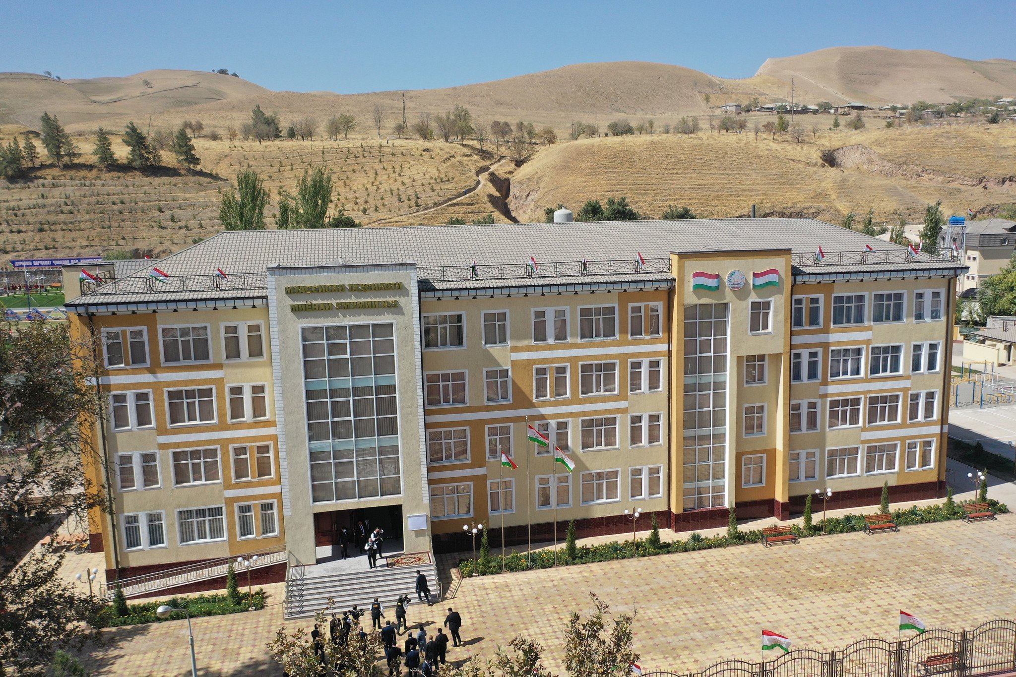 Ҳамчунин саҳн ва роҳравҳои муассиса дар масоҳати 800 метри мураббаъ сафолакпӯш гардида, 20 адад чароғаки равшанидиҳанда насб шудааст.
